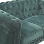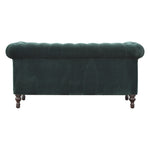 This beautiful 2 Seater Chesterfield Sofa has been upholstered in a luxurious emerald green cotton velvet and features 4 turned feet constructed from 100% solid mango wood in a walnut finish. This sofa is detailed with deep button tufts, piping and sheltering arms. This is a statement piece for the home which can be added as a pop of colour to any room in the home or can be suited well with many different styles and colours of interiors being modern or classic.