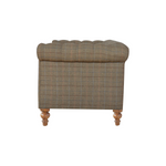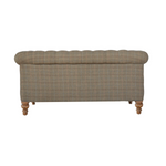 This Chesterfield 2 Seater Sofa is fully upholstered in multi tweed and is constructed from 100% solid mango wood. This 2 seater sofa is detailed with deep button tufts, piping and sheltering arms. This country tweed sofa also features hand turned legs with a fine natural bleach finish. You may encounter variations from batch to batch hence if you are looking to pair products under similar room settings; you can opt for a bespoke order or take an informed decision about the possible variations.