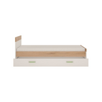 4KIDS Single bed with under drawer in light oak and white high gloss with coloured handles. The 4KIDS collection is perfect for all age groups, finished in light oak and stunning white high gloss. Single bedframe with massive underbed storage unit.