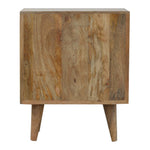 A practical and stylish addition to the home, this Artea Porcelain patterned mini cabinet can be used anywhere in the home from the hallway, bedroom or living room. Constructed from 100% solid mango wood in an oak-ish finish and 4 Nordic style legs, this piece offers storage space with 2 open slots and 2 drawers that each have a shiny knob.