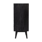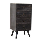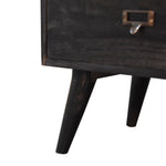 Constructed from solid mango wood in an ash-black finish, this filing cabinet features nordic style legs, and spacious drawers which have paper inserts in the handles, perfect for categorising and sorting files and important paperwork in a study room, home, or office.
