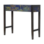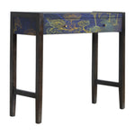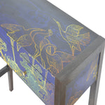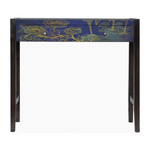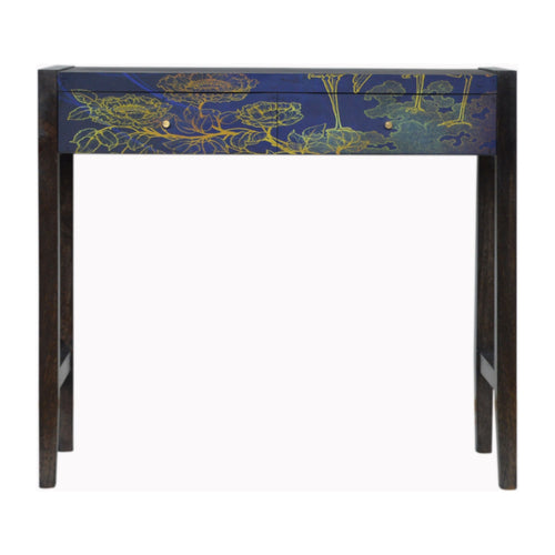Introducing the LLB range. Mid-Century Modern has never looked so elegant. Avanti is the epitome of sleek elegance combined with the exquisite Fine Art of the extensive LLB design archive to make pieces that will, most certainly become antiques of the future. The main feature of this Console table is the beautiful screen-printed midnight-blue print with gold accents of flowers and birds which covers the entire piece. The product has MDF drawers and 2 ash black frames constructed from 100% solid mango wood along with 3 shiny knobs, allowing the product to stand sturdy in your home. Works as a handy piece and is perfect for use in the hallway. Designed by Laurence Llewelyn-Bowen
