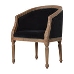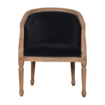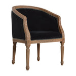 This classy occasional chair has been upholstered in a black cotton velvet fabric. It features a studded design and legs constructed from 100% solid mango wood in N3 natural finish, providing strength and durability. This simple yet classy piece can be incorporated in different home settings and interiors.