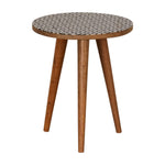 This end table is a versatile piece that can be used as a side table or a footstool. It has been constructed from 100% solid mango wood in an oak-ish finish and is handy as well as stylish. It is perfect to use in any room in the home and features Nordic-style legs and has a lovely patterned top.