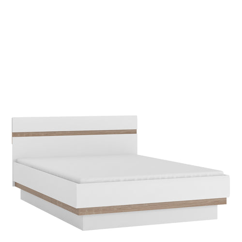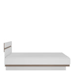 Double Bed in white with an Truffle Oak trim. Unconventional design - a proposal for the followers of the latest trends. The clever mix of scratch resistant white melamine with beautiful high gloss fronts and oak melamine trim makes this top quality collection of furniture the ideal destination for the most modern of homes, the massive range that includes many cabinets and wall units fulfils every storage and display option. Inc slats.