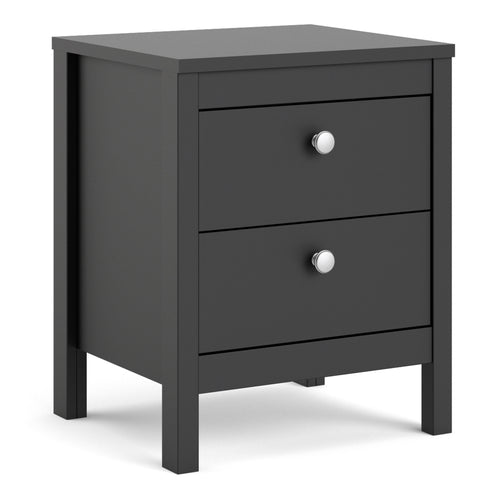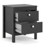 A contemporary bedside table in an elegant design complete with a simple metal handle, also available in white