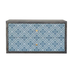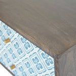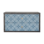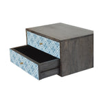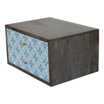 Introducing the LLB range. Space-saving style solutions are now, more than ever, incredibly important for modern living. The Riva collection has been specifically created to suit smaller spaces, and yet Riva furniture pieces remain perfectly formed impactful pieces of contemporary design. This wall-mounted bedside has been constructed from 100% solid mango wood in an ash black finish and features a blue 'LUCKY LOCKET' screen-printed design on MDF drawer fronts which are finished with a shiny knob. Designed by Laurence Llewelyn-Bowen.