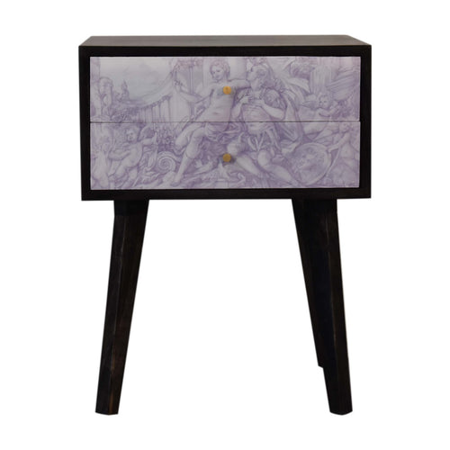 Mid-Century Modern has never looked so elegant. Avanti is the epitome of sleek elegance combined with the exquisite Fine Art of the extensive LLB design archive to make pieces that will, most certainly become Antiques of the future. This bedside features 2 MDF screen printed drawer fronts which have a beautiful ancient Greek style sculpture pattern made to attract attention in the bedroom. It also features Nordic style legs in an ash black finish and shiny knobs and on both drawers. Designed by Laurence Llewelyn-Bowen
