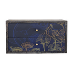 Mid-Century Modern has never looked so elegant. Avanti is the epitome of sleek elegance combined with the exquisite Fine Art of the extensive LLB design archive to make pieces that will most certainly become Antiques of the future. The beautiful midnight blueprint which has gold accents of flowers and birds has been printed on the drawer fronts and is bound to turn heads in the bedroom. This bedside features an ash black body which is constructed from 100% solid mango wood with 2 MDF drawers perfect for keeping bits close before bedtime. Designed by Laurence Llewelyn-Bowen