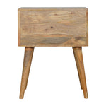 This bedside table is the perfect stand for any bits and pieces you wish to keep nearby before bedtime. It features ample space for a lamp, photo frame or any ornaments. It has been constructed from 100% solid mango wood with a fine oak-ish finish body with one blue hand painted drawer & another screen printed drawer with a blue and white pattern. A lovely pop of colour and addition to the home.