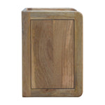 This gallery back beside has been constructed from 100% solid mango wood in an oak-ish finish finished with a coat of lacquer meaning it is durable and can withstand years of use. It features a cut out handle enabling a easy opening into 2 of the drawers which creates a clean and contemporary finish.
