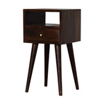 This beautifully designed bedside is constructed from 100% solid mango wood and has a rich light walnut finish. Useful storage space is available with a 1 drawer, 1 shelf and a decent sized table top to place any ornaments. Other features include a pull out drawer, and 4 Scandinavian styled legs to give it that Nordic/modern style which will suit most interiors.