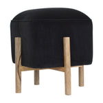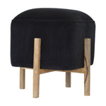 Combining the best of simplicity with the timeless look of luxury, this stylish footstool is upholstered in black cotton velvet and can be used in any part of the home as an accent piece, as a foot rest or as extra seating around a small table. Another feature of this piece are the 4 solid wood legs in an oak-ish finish, the supportive legs ensure durability, giving you a place to rest your feet for years to come.