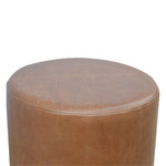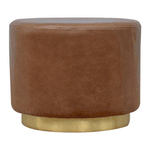 This footstool has been upholstered in this beautiful brown buffalo leather. It stands on a beautiful brass base which is a great transition between the fabric and the gold colour. This stool is a statement piece that will add a finishing touch and pop of colour to your room.