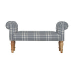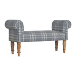 Update your home with this lovely grey canus tweed bench, it features turned legs made of 100% solid mango wood in a oak-ish finish and roll-over arms, ideal for a hallway or end of the bed.
