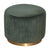 This beautiful and fashionable footstool will make the perfect addition to any bedroom or living room. It has been upholstered in a luxurious emerald green cotton velvet fabric with a pleated design featuring a gold brass base. Perfect for putting your feet up, using as a handbag stand, or as an accent piece in the home.