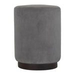 This beautiful and fashionable footstool is the perfect addition to any bedroom or living room. It is upholstered in a luxurious Grey cotton velvet fabric and features a Walnut finish base. Perfect for putting your feet up, using as a handbag stand, or as an accent piece in the home.