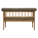 Add some luxury style to your home living area with this fabulous country tweed hallway bench. It is constructed from 100% solid mango wood in a oak-ish finish and upholstered in 100% multi tweed. Other features include antique studs, detailed hand carved and hand turned front legs with casters and an overall oak-ish finish. You may encounter variations from batch to batch hence if you are looking to pair products under similar room settings; you can opt for a bespoke order or take an informed decision about the possible variations.