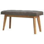 This bench is ideal for extra seating, and is constructed from 100% solid mango wood, and upholstered in multi tweed. Other features include deep button tufts and 4 Nordic-style legs which have a smooth oak-is finish. You may encounter variations from batch to batch hence if you are looking to pair products under similar room settings; you can opt for a bespoke order or take an informed decision about the possible variations.