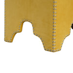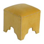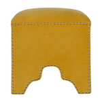 The beautiful and fashionable footstool is the perfect addition to any bedroom or living room. It is upholstered in a luxurious mustard yellow cotton velvet fabric and features a gold studded design. Perfect for putting your feet up, using it as a handbag stand, or just as an accent piece in the home.