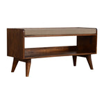 This Nordic style shoe storage bench has been beautifully made from 100% solid mango wood in a chestnut finish. This bench provides comfortability with a seat pad upholstered from mud linen and can be used in a variety of settings such as the bedroom, hallway or living room.
