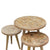 This set of 3 Nordic style round stools are made of 100% mango wood with a patchwork patterned top and are perfect for providing extra seating for guests or for everyday use. The stools also work as side tables, providing excellent versatility. With their compact size they are perfect for use in small spaces, and can be tucked away under one another partially. Other features include Scandinavian legs and a fine oak-ish finish. These 3 tables are of Partial nesting.