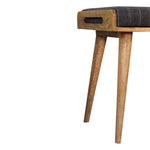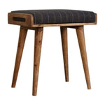 This footstool features a tray-style design and 4 Nordic-style legs constructed from 100% solid mango wood. It is upholstered in a Pewter tweed fabric, which works as a comfortable seat and can be incorporated into many different interior styles as it offers a very clean and modern design, along with providing a nice contrast between the material and wood.