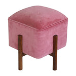 Combining the best of simplicity with the timeless look of luxury, this stylish footstool is upholstered in pink velvet and can be used in any part of the home as an accent piece, footrest, or as extra seating around a small table. It features four supportive solid wood legs to ensure durability making it a piece that will last for years to come.