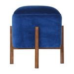 Combining the best of simplicity with the timeless look of luxury, this stylish footstool is upholstered in blue cotton velvet and can be used in any part of the home as an accent piece, as a foot rest or as extra seating around a small table. Another feature of this piece are the 4 solid wood legs in an chestnut finish, the supportive legs ensure durability, giving you a place to rest your feet for years to come.