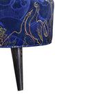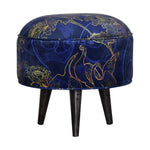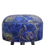 Introducing the LLB range. Mid-Century Modern has never looked so elegant. This footstool provides the perfect contrast by offering a beautiful midnight-blue print which has gold accents of flowers and birds upholstered in cotton velvet and wooden legs constructed from 100% solid mango wood in walnut finish, made to compliment the classic Nordic style. This little stool will add a pop of colour to any room and serve handy all over the home.