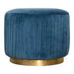 This beautiful and fashionable footstool will make the perfect addition to any bedroom or living room. It has been upholstered in a luxurious teal cotton velvet fabric with a pleated design featuring a gold brass base. Perfect for putting your feet up, using as a handbag stand, or as an accent piece in the home.