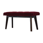 Beautifully upholstered in a plush wine red cotton velvet fabric this stylish piece offers a comfortable spot to sit down or put your feet up. The Nordic style legs have been constructed in 100% solid mango wood and finished in a walnut finish which gives an enduring appeal that's perfectly suited in a hallway or below a window in your living room.