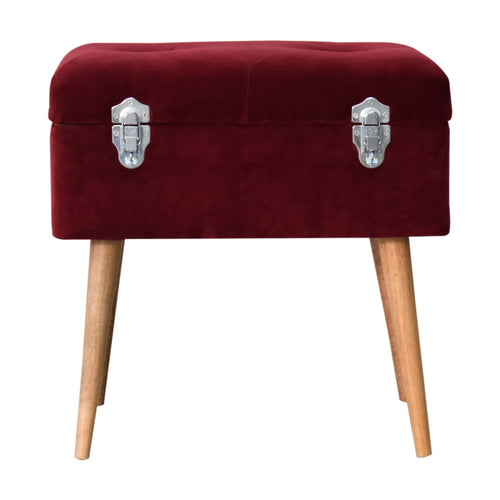 This chic storage box has been upholstered in a wine red cotton velvet and features 2 stylish chrome dropdown handles for easy access. The nordic-style legs have been constructed from 100% solid mango wood in an oak-ish finish which complements the fabric beautifully.