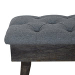 This chic storage bench in a Nordic tweed design has been upholstered in a charcoal tweed and features a stylish deep button design on top for comfort and design. The legs have been constructed from 100% solid mango wood in a ash black finish that compliments the fabric beautifully.