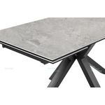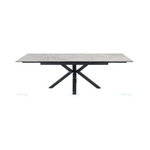 These dining tables boast a whole host of features including a ceramic table top which is bonded to 12mm glass for extra durability. The table top is available in either white with grey streak marble ceramic or grey with white streak marble ceramic, depending on your taste and style. The extension inserts include 2 x side pull-out extensions for ease of use with a smooth and robust extension mechanism. Finally the pedestal is constructed from matt black steel and features adjustable feet for uneven floors.