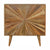 This cabinet has been designed to provide a convenient storage space for your home. It has been constructed from 100% solid mango wood in a oakish finish with a sunrise pattern followed by shiny candle knobs. Offering a modern retro aesthetic, this cabinet is both a handy and timeless option for your home.