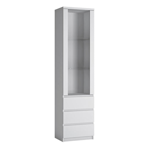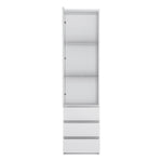 A glazed display case with a simple shape with lots of practical solutions is a proposal from the Fribo collection. The site has three spacious drawers with the possibility of full extension, and the handle-free system used in them will allow for comfortable use of the furniture. The body is universal , which means that it is extremely practical , it can be installed so that it opens to the left or right - the choice is yours. The interior of the site can be beautifully illuminated with energy-saving LED lighting (sold separately), placed behind glass shelves or under the top crown, it is a perfect base for decorations and creates an atmospheric atmosphere. The front has toughened safety glass. The simple, minimalist form of the furniture will work in modern interiors, and the alpine white décor will allow for countless color combinations in the interior of the room. The furniture is made of laminated chipboard, resistant to moisture, scratches, damage and high temperature. The program is available in two colour versions: Alpine White and Golden Ribbeck Oak.