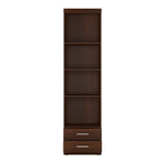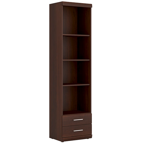 Tall 2 Drawer Narrow Cabinet with Open Shelving in Dark Mahogany Melamine. This beautiful classic collection offer an elegant and practical room layout. Limited space is no longer a problem...