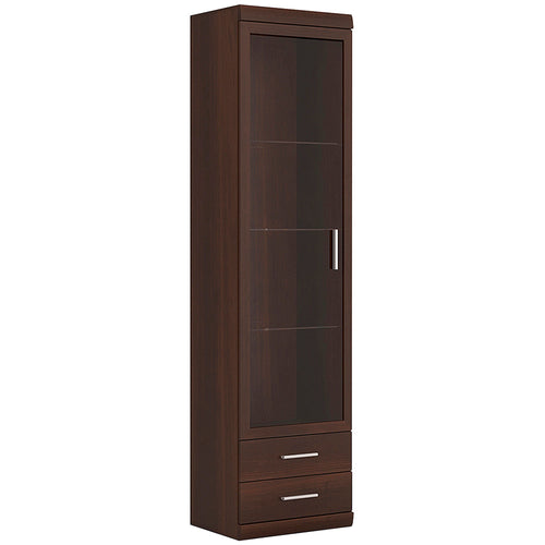 Tall Glazed 1 Door 2 Drawer Narrow Cabinet in Dark Mahogany Melamine. This beautiful classic collection offer an elegant and practical room layout. Limited space is no longer a problem as the range offers great storage options. The range is manufactured in dark mahogany melamine with laminated board (resistant to damage and scratching, moisture and high temperatures).