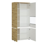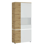 The tall vitrine features a glass panel, and has a geometric feel and modern design, all of which combine to make your interior appear lighter. The inside of the vitrine has a lot of storage space, and features room behind the glass, where you can display interesting accessories and highlight their charm with optional lighting (sold separately). The piece features an ergonomic handleless solution, soft-close accessories and tempered glass. A huge attribute of the Luci vitrine is the integrated lighting (included), which makes it unique. The vitrine is available in two versions: left- and right-mount. The Luci collection is available in two colours: Artisan Oak/Alpine White and Artisan Oak/Grey Cosmos.