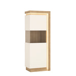 Narrow display cabinet (LHD) 164,1cm high (including LED lighting) in Riviera Oak/White High Gloss. Space saving narrow 164cm high display cabinet (left hand door opening) has smoky glazed area to display family treasures. Includes concealed lighting arrangement. A high quality collection in a ultra modern design - with each item complementing each other.