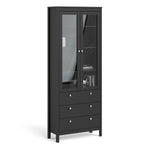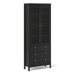A modern glass display cabinet with two doors and three drawers in a striking design complete with a simple metal handle, also available in white Size in mm: W 778.5 x...