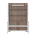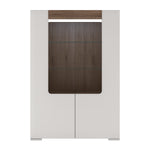 Low Glazed 2 Door Display cabinet with internal shelves, High Gloss with San Remo Oak inset (inc. Plexi Lighting). A delightful low glazed display cabinet that has many features including soft close doors, internal LED lighting and adjustable shelves. Warm and yet cool living and dining collection in white High Gloss with San Remo Oak inset.