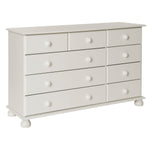 Copenhagen 2 + 3 + 4 Drawer Extra wide chest in attractive off white MDF is a large, stylish solid chest of drawers with lots of storage space. The top makes a nice area for a mirror or photos and the total of 9 easy gliding drawers with cam lok drawer fronts gives lots of storage space. Crafted from white MDF and finished with a smooth lacquer makes this a durable and attractive choice for any bedroom.