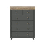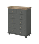 Functional, spacious and practical, the Evora 45 combines timeless elegance and cutting-edge aesthetics. This premium chest is crafted from 16mm laminated board for maximum structural strength, as well as resistance against abrasion, and features six drawers for storage. It's available in Oak Lefkas with either a dark green or white finish.