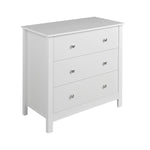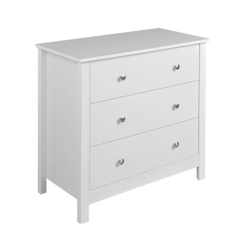 Florence chest with 3 drawers in White in attractive white MDF is an elegant space saving storage solution for the bedroom with generous deep drawers. The wide top gives plenty of space to put the family pictures and prized ornaments on, the 3 easy gliding drawers offer plenty of storage space and are comlimented by the stylish metal handles. Modern shaker design in solid white MDF and finished with a smooth lacquer making this an attractive choice for any bedroom. For a single bedroom why not add our matching bedsides and 2 drawer wardrobe.