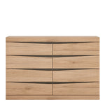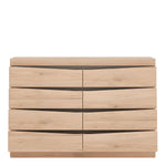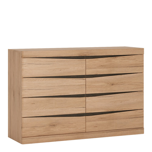 4 + 4 Wide Chest of Drawers in Oak. This fantastic grained oak finish with the contrasting dark trim makes this modern top quality collection of bedroom furniture the ideal destination for the most modern or traditional homes.