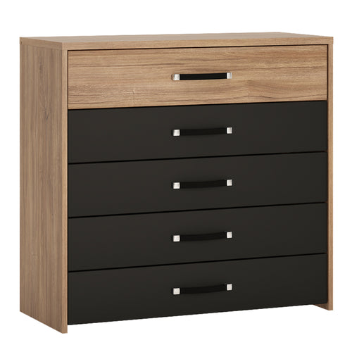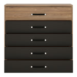 5 drawer chest in Stirling Oak with matt black fronts. Chest of drawers with unique design fitting the rest of the range with plenty of storage in the 5 drawers....