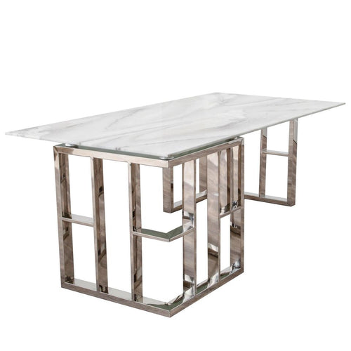 This stunning coffee table would take pride of place in any living space, it's abstract legs and marble top is subtle yet eye catching. The sophisticated Manhattan Coffee Table has a mirrored stand that captures the view of your décor and reflects back for added light.