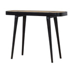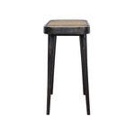 This console table has been beautifully made from 100% solid mango wood in a ash black finish with a hand-woven rattan top. Featuring rounded corners, the console table can be used in a variety of settings such as the bedroom, hallway or living room. Perfect for storing pieces like flowers, photo frames etc.